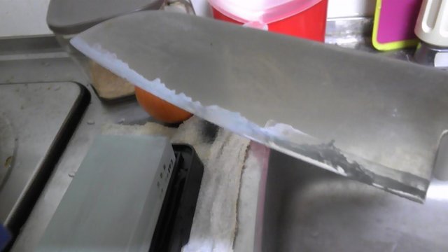 刃欠けがひどい包丁なので、今回は荒砥石である程度研いでいくスタイル